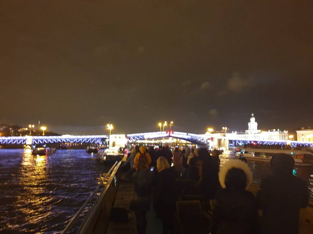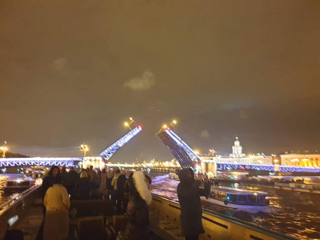 Կամուրջների բաժանումը անբացատրելի սիրուն է: Քաղաքի լույսերը արտացոլվում են ջրի մեջ և տեսարանն ավելի գունեղ դարձնում: Երեկոյի իջնելուն պես քաղաքը թաթախվում է լույսի մեջ: