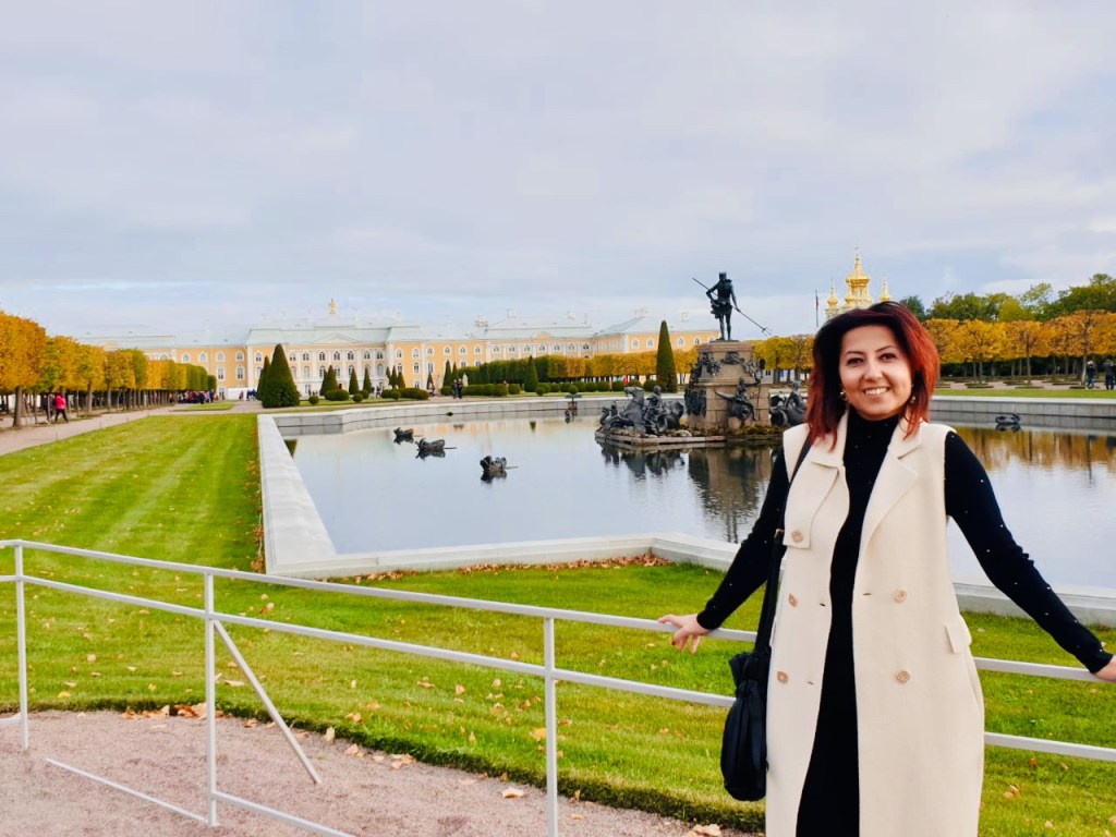 Սիրում եմ այսպիսի քաղաքները, որտեղ պատմությունն ամենուր է: Պետերգոֆ. կարծես ժամանակի մեքենան տեղափոխեց այլ ժամանակաշրջան և ուր որ է ֆիննական ծոցից ջրանցքով կանցնեն նավերը ու կկայանեն պալատի առջև ու կիջնի թագավորն իր նազիր վեզիրների ուղեկցությամբ: Մի քիչ էլ առաջ շարժվես՝ կանաչի մեծ կորած այգում կհանդիպես թագուհուն, ով վեհ կեցվածքով քայլում է՝ վայելում ծոցից եկող մեղմ քամին: Ժամանակն այստեղ կանգնած է՝ թագավորական կյանքի շքեղությունն ակնառու է ամենուր: