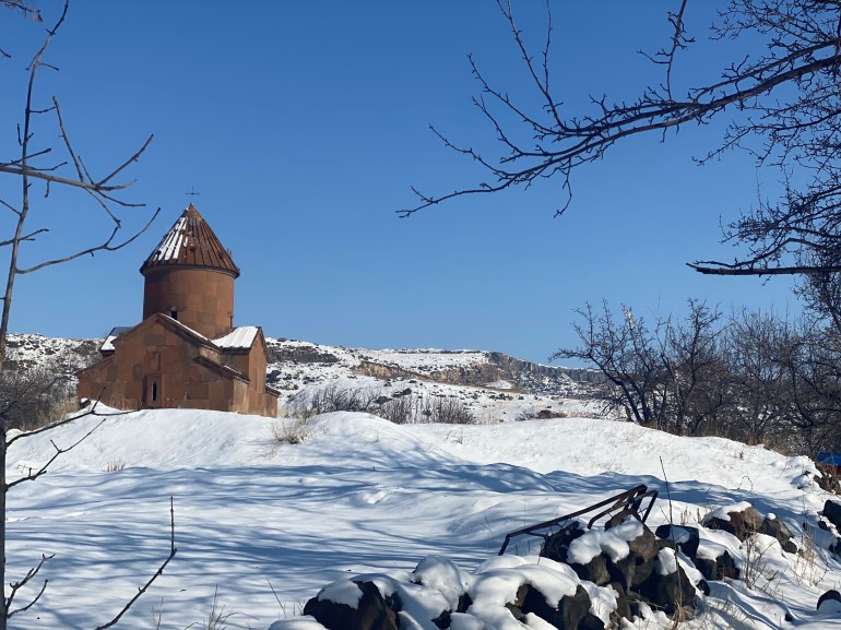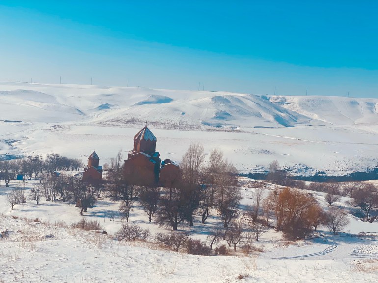 Երկնքից արդեն իջնում ենք. կիճում անսահման սպիտակի միջից Մարմաշենի վանքի գմբեթն է վեր խոյանում: Տեսարան է, որ բացականչություններով ես արտահայտում զգացողություններդ: Ահա և սառած գեղեցկուհին՝ Ախուրյան գետը: Ամբողջ երկայնքով սառել է, ու մի ուրիշ հմայք է հաղորդում շրջակայքին: